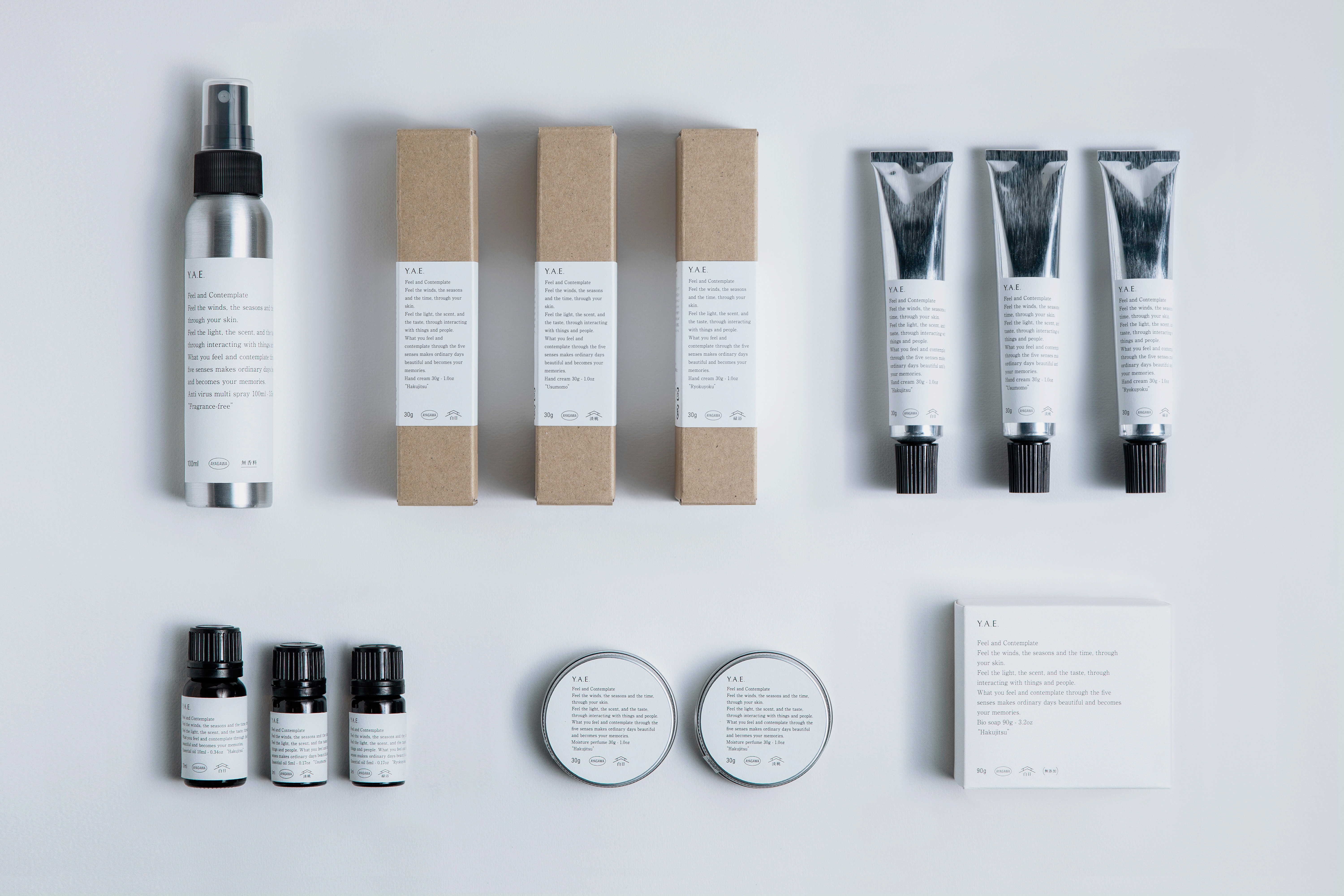 Y.A.E. is a new gift shop of original aroma, apparel merchandise produced under the concept of ‘feel and contemplate’. In parallel with the reopening of yae shokudo restaurant right next to it, the shop opened as a new brand.